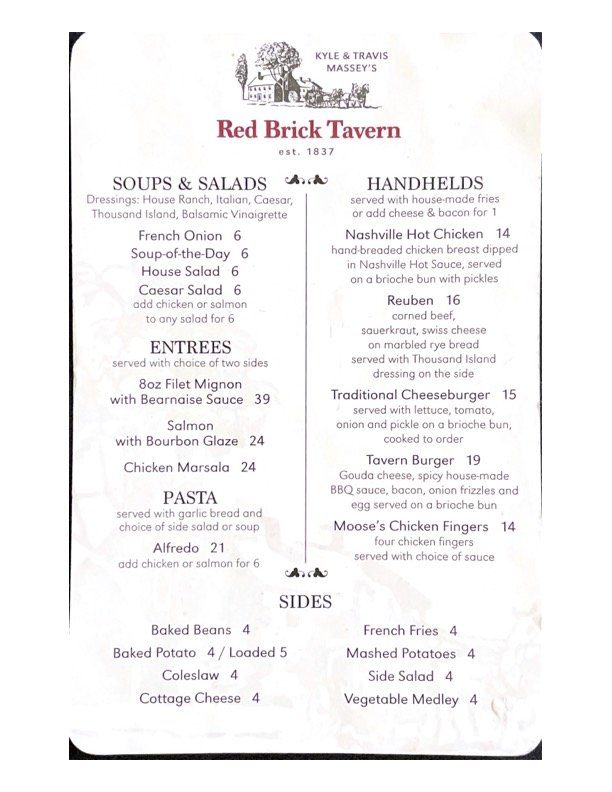 The reviews speak for themselves, with patrons praising the exceptional service, reasonable prices, and overall enjoyable atmosphere. For vegetarians, there are options available to suit your dietary needs. Even if you're just passing through the area, a visit to Red Brick Tavern is a must for a taste of classic American cuisine with a side of history.